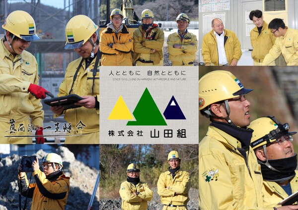自社PR会社が100年続くには、お客様からの信用・信頼が不可欠です。確かな技術力をもったベテランと、それに追いつけ追い越せと頑張る若い社員が一緒になってつくり上げた道路や建物が、お客様に認められることで会社は続いて来ました。だから、山田組の魅力は「人(社員)」です。
