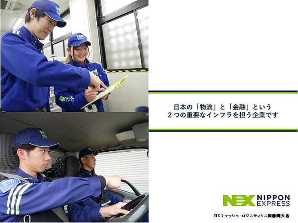 | 自社PR | ◆会社について◆ NXキャッシュ・ロジスティクス株式会社(NXCL)は50年以上続く日本通運の警備輸送事業が分社化し、新たにスタートした会社です。 東京都に本社を構え、貴重品運搬と現金の管理を行っている専門会社です。私たちは、お客様の大切な資産を安全かつ確実に運搬することを使命としています! ・従業員数:全国7,336人(静岡県内約300人) ・拠点:約90拠点 (静岡県内:静岡市、沼津市、浜松市の3拠点) ◆職種紹介◆ ◎貴重品運搬警備 警備輸送車両に2人1組(運転手・助手)で乗務し、お客様からお預かりした現金や貴重品を安全にお届けするお仕事です。 ◎構内作業(現金整理員) お客様からお預かりした貴重品、現金(紙幣・硬貨)を当社施設内で計算、整理、保管・指定口座に入金するなど貴重品管理を行うお仕事です。 ![]() |